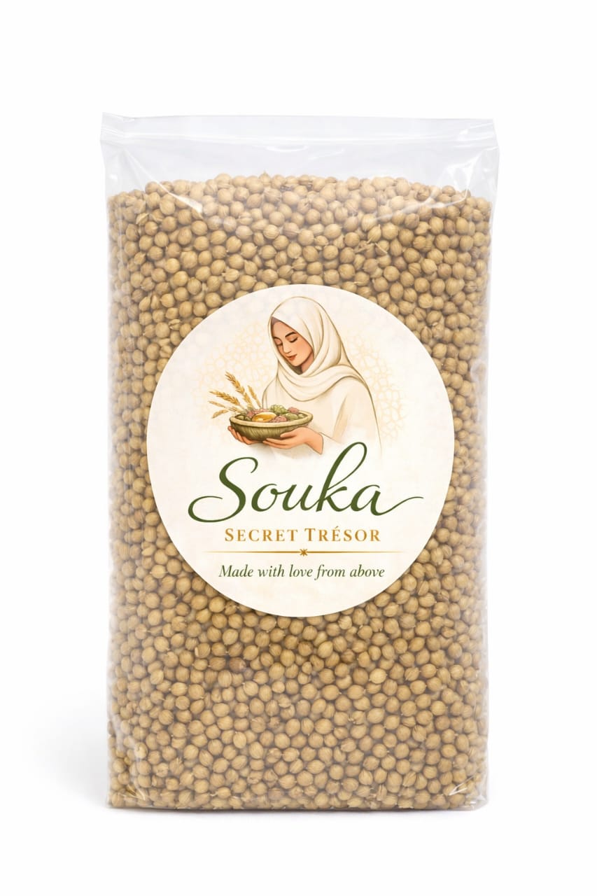 Notre trésor Grain de Coriandre 1 kg est une épice naturelle et parfumée, soigneusement sélectionnée pour apporter une touche chaleureuse et légèrement citronnée à vos plats. Indispensable en cuisine, il sublime les tajines, sauces, marinades et préparations traditionnelles. Un ingrédient authentique qui révèle toute la richesse des saveurs du terroir.